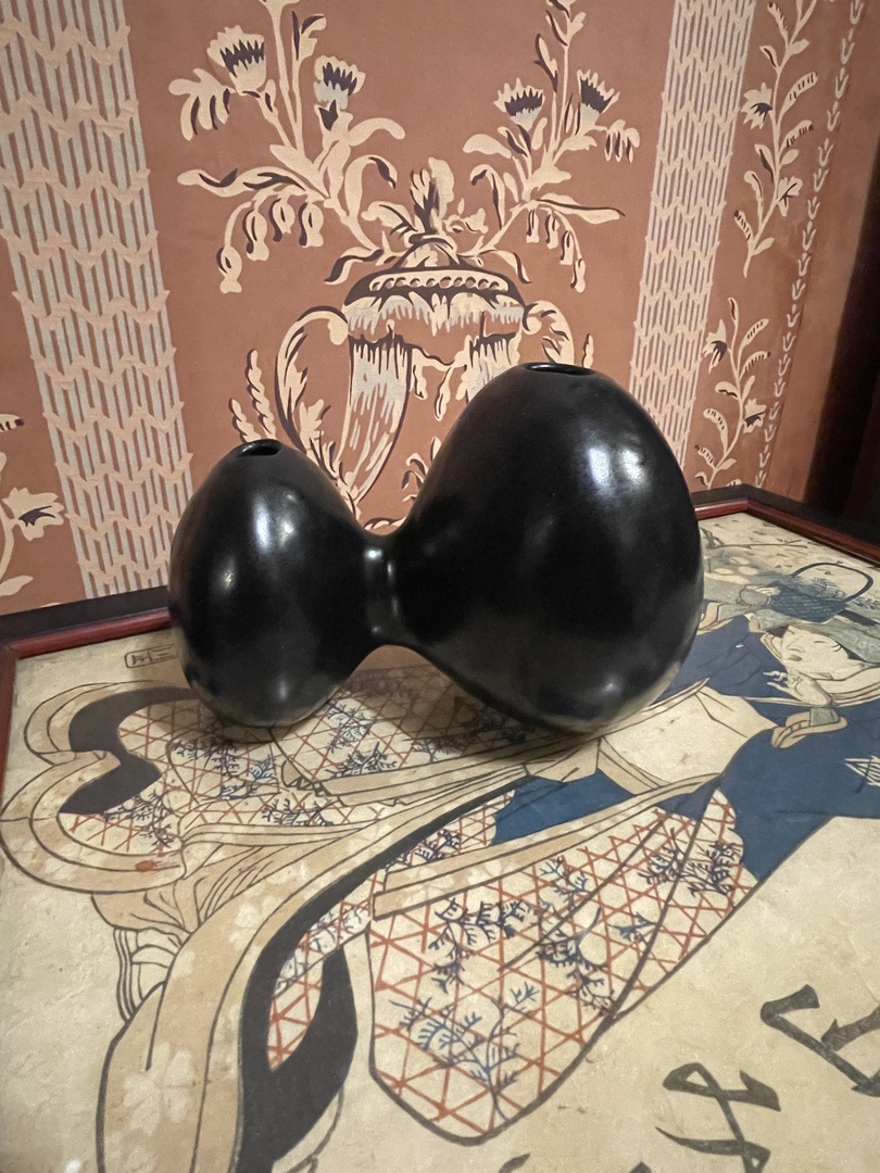 The pottery vase pictured here in white and another in black, in the original box, was designed by Sōfū Teshigaharwa .