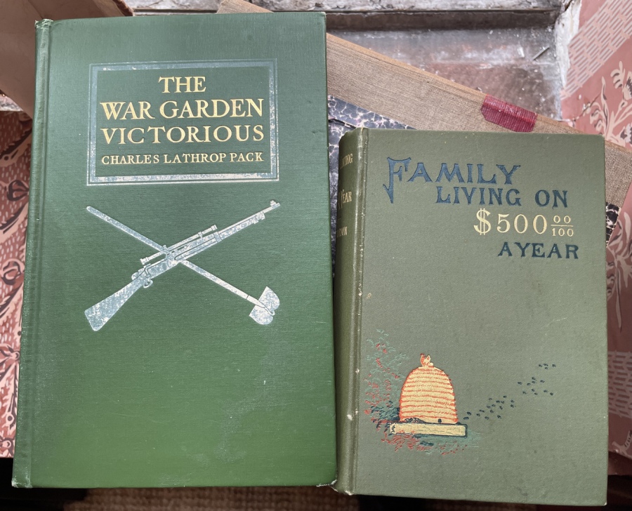 Charles Lathrop Pack. THE WAR GARDEN VICTORIOUS. Philadelphia: J.B. Lippincott Company, 1919. Profusely illustrated with drawings and photos. How to make productive vegetable gardens. 179 pages + 34 page adddendum of recipes and technique instructions for preserving, storing and . Illustrated. $300.