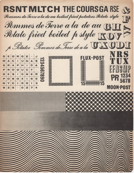 FLUXUS. POMMES DE TERRE.... uncut elements, here, as a broadside, George Maciunas' graphic designs. $125.