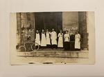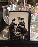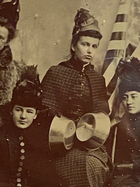 TINTYPE. SUFFRAGETTES AND KITCHEN PANS. AN INSPIRATION ! an image of our fore-sisters, beautifully dressed, an American flag in the background and kitchen pans !! for the noise. 5 X 3.5. NFS