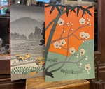 Charlotte M. Salwey. FANS OF JAPAN. London: Kegan Paul, Trench, Trübner, & Co. Ltd., 1894. 10 color plates with tissue guards. 149 pgs. library leather spine with stamped title, new endpages front and rear of book. yellow colored covers with an elaborate stamped fan design. errata sheet tipped in at Chapter 1. exlibris Forbes Library Northampton, perforated stamp on title page and and ink stamp on the 10 color plates. deaccessioned.